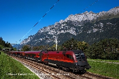 Br 1116 203 mit RailJetExpress Zürich – Wien – Budapest in Mols.